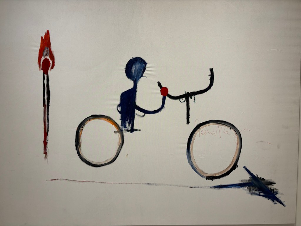 Basquiat et ce vélo avec l’homme bleu dessus qui va sur une toile blanche. Où ? On peut tout imaginer et réaliser.