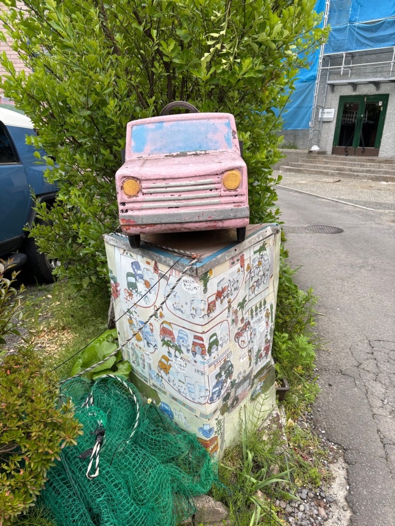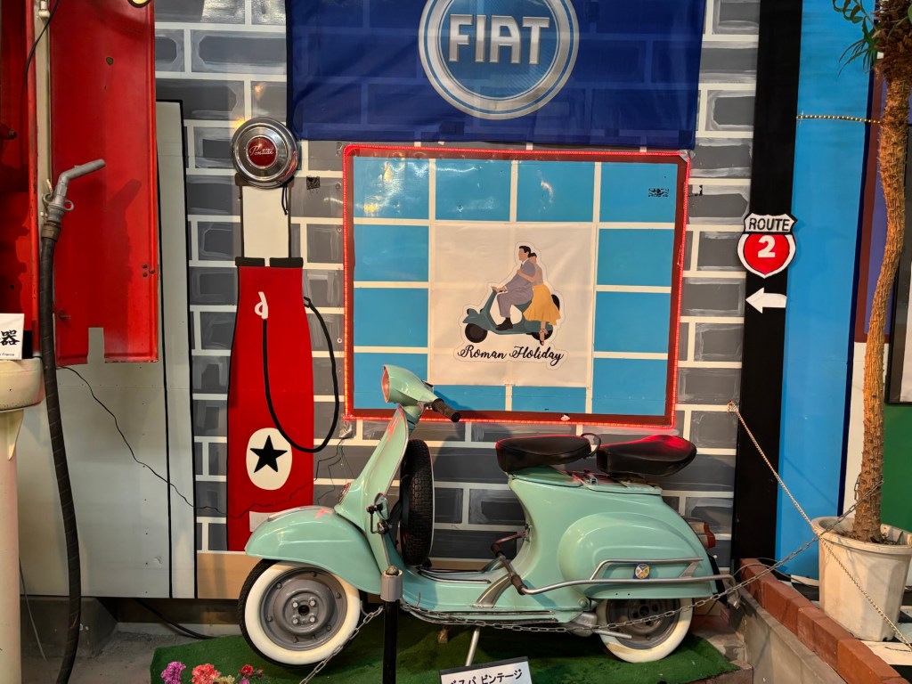 On peut aussi voir des motos ou des vespas que j’imagine bien sur les routes japonaises en été.