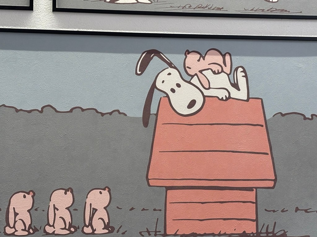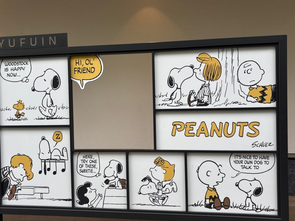 Et en sortant de ce Rétromobile je suis tombée sur des boutiques Snoopy en tout genre où l’on trouvait des chocolats, des cahiers, des peluches de toutes tailles, des bonbons, des cookies, des glaces et surtout des murs décorés de bandes dessinées. Cela m’a fortement amusée car tout est dans la démesure au Japon ou rien ou tout.