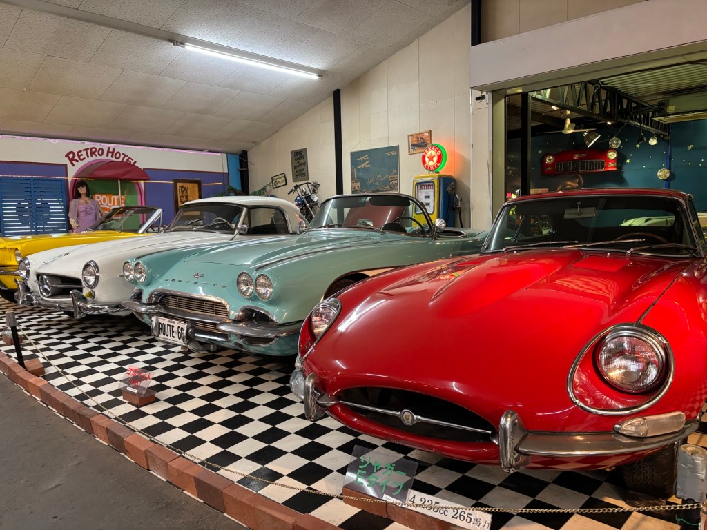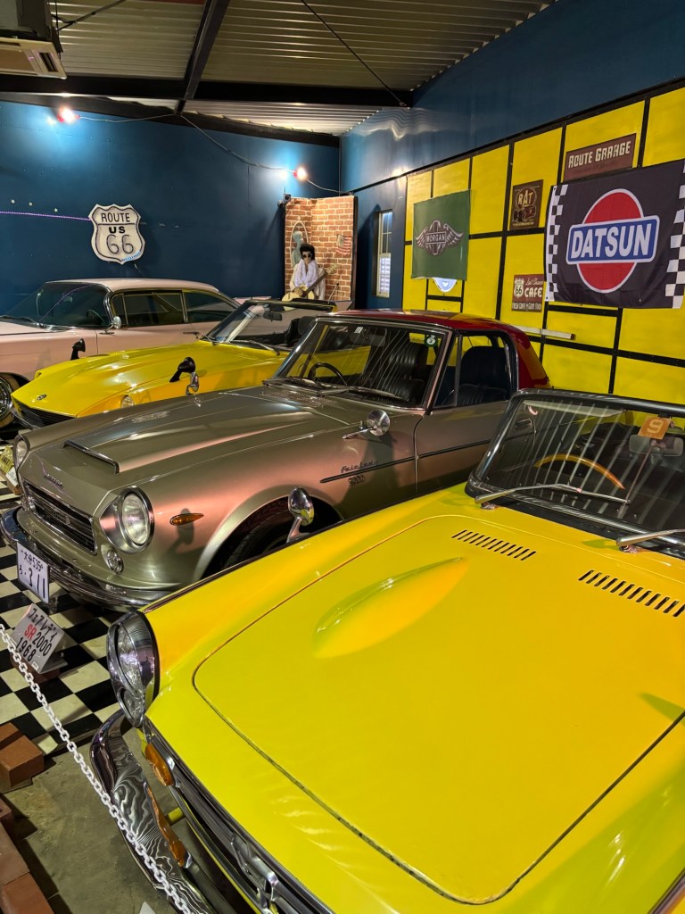 Sur la route me dirigeant vers le Mont Aso, j’ai découvert dans la ville de Yufin deux endroits tout à fait éclectiques : l’un honorant Snoopy et l’autre exposant des vieilles voitures.
