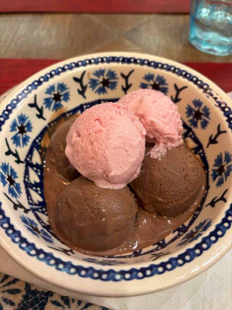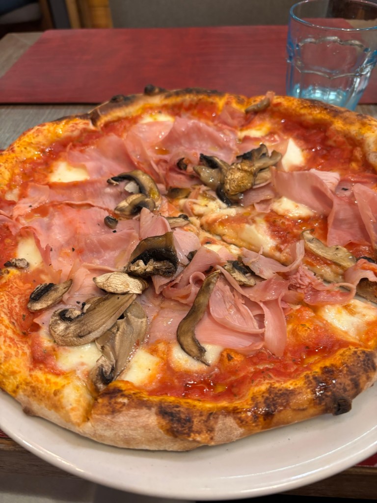 Et puis la pizza italienne croustillante qui fait baver tout le monde et la glace au chocolat et à la fraise (frugola).
