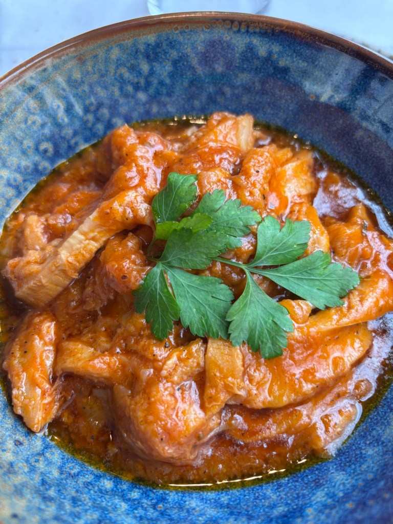Pour mon premier repas, proche du marché central, et pour déguster la spécialité florentine – ce sont les tripes florentines à la sauce tomate. On dirait des lanières ! J’aurais dû les accompagner avec des pommes de terre cela aurait été approprié !