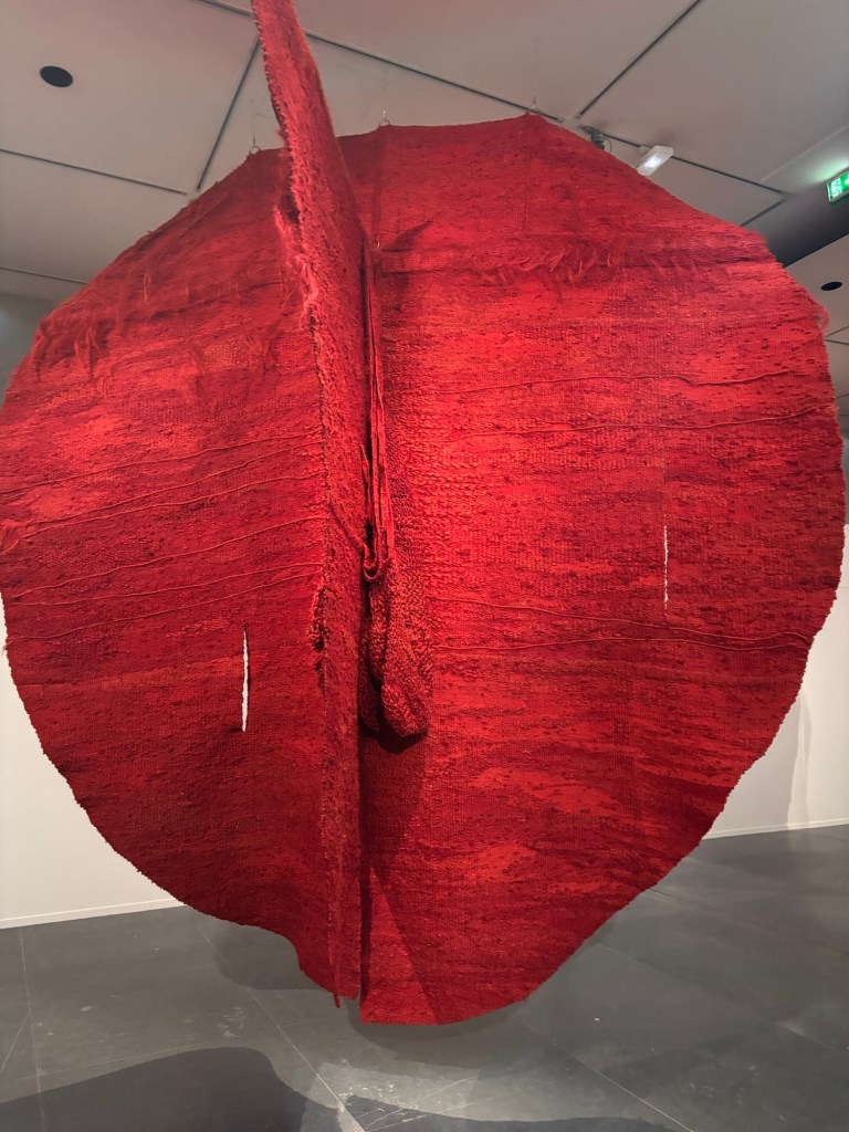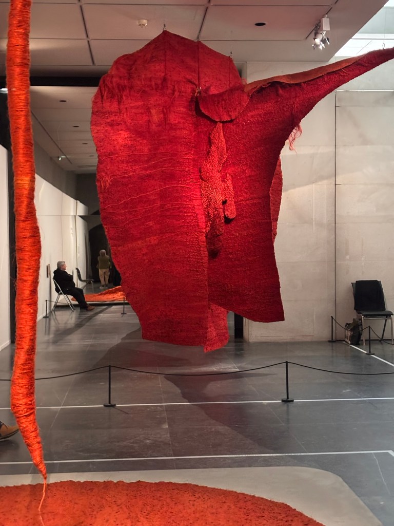 Puis j’ai découvert les œuvres de Magdalena Abakanowicz, sculpteur polonaise qui tisse aussi ses toiles dans des textiles colorés rouges ou bien beiges qui sont monumentales.