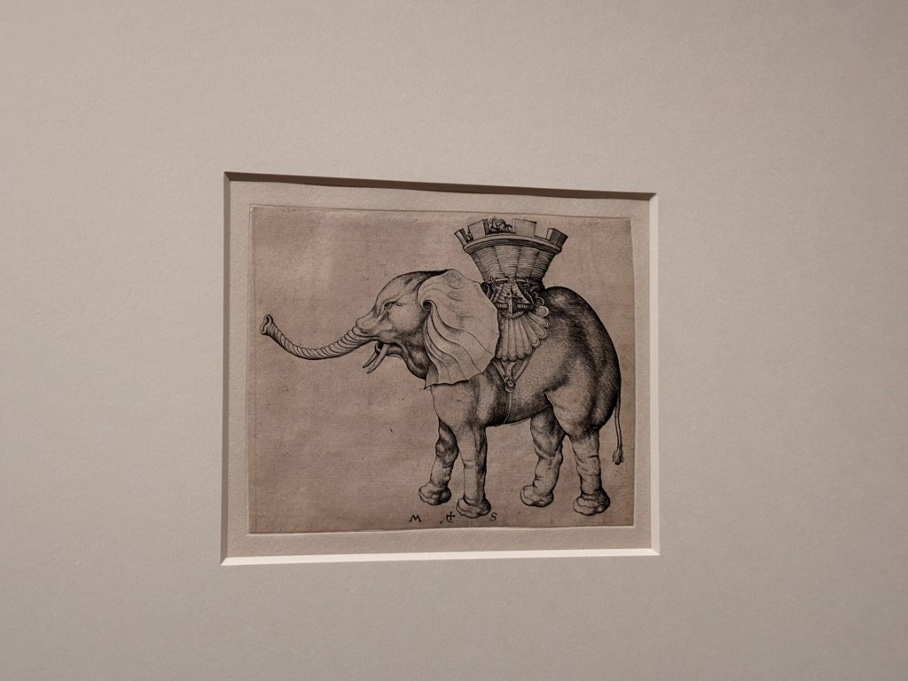 On y retrouve les animaux extraordinaires comme cet éléphant voire les émaux. On y retrouve des fusains de Martin Shongauer comme Saint Antoine tourmenté dans les airs au lieu de la grotte habituelle, lancé dans une lutte contre les démons de manière spirituelle. Il fait écho à celui peint par Martin Bernat sur le même thème.