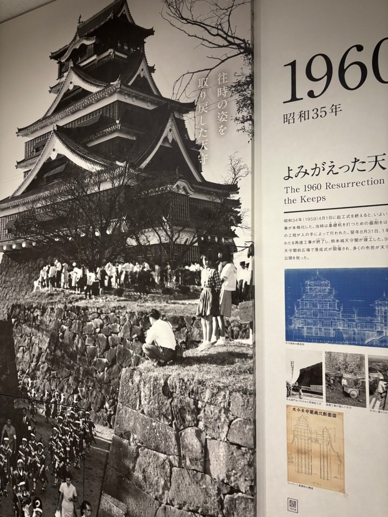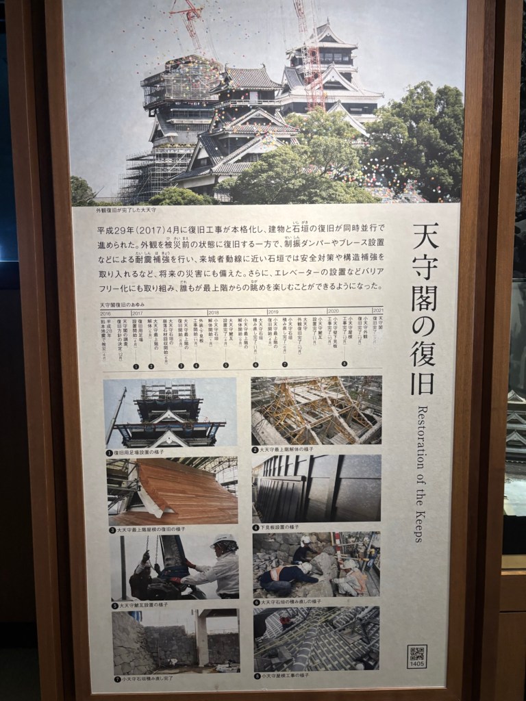 On peut aussi voir la restauration du château depuis 2016 date du dernier tremblement de terre et affaissement du lieu. Et on peut voir aussi que cela est répétitif car en 1927 il s’était affaissé aussi. En 1958 il avait été décidé de le reconstruire et en 1960 il était tout neuf.
