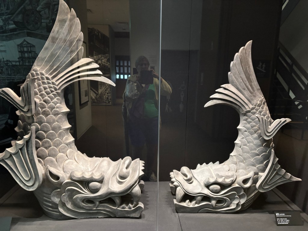 Puis d’étages en étages on reconstitue l’histoire du château et surtout les merveilles qui sont encore à ce jour visible comme ce poisson en albâtre. On nous présente des photos aussi des fondations avec ces pierres immenses identiques à celles des pyramides d’Egypte. On se demande comment elles ont pu être transportées par des hommes.