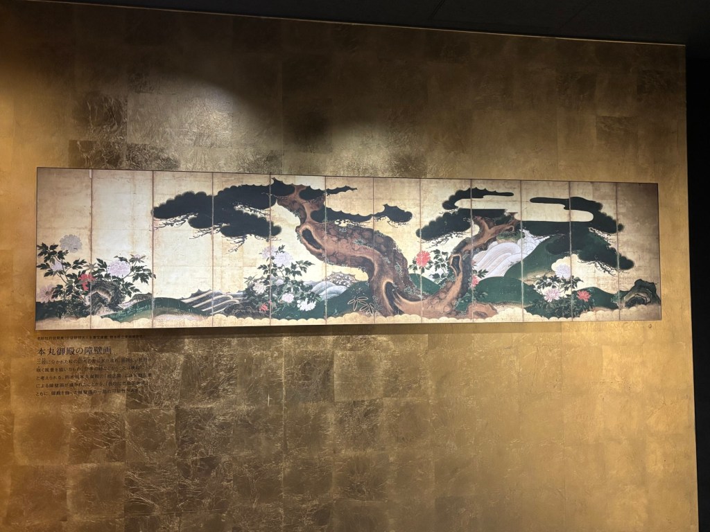 On peut aussi y admirer des habits des samouraïs ainsi que les boites qui servaient à voyager et les armes afférentes. On peut admirer aussi les pans de murs ou de paravents couleurs or ornés du soleil levant et de forêts. La nature est toujours présente avec les arbres ou bonsaïs.